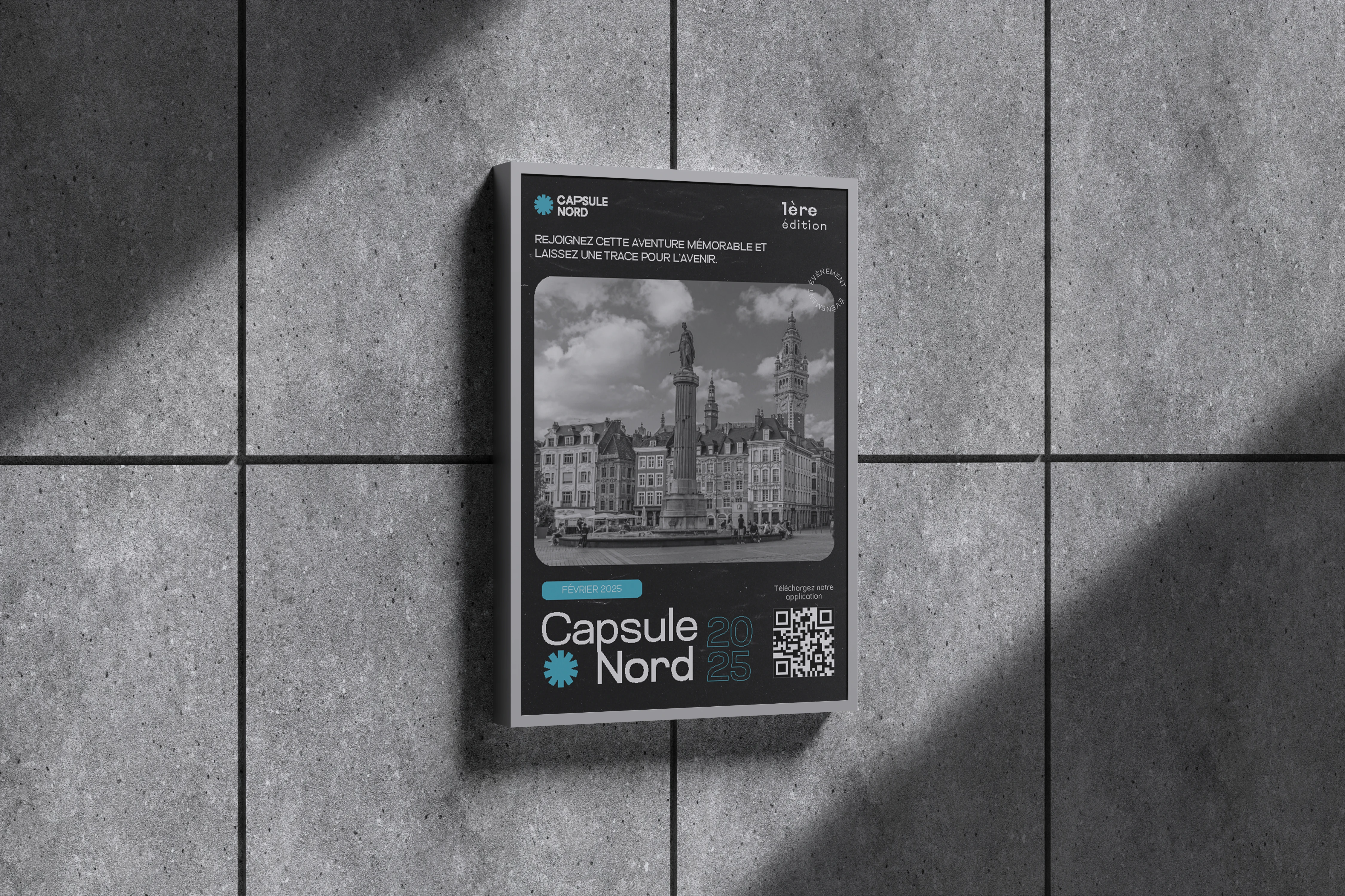 Le projet consistait à créer l’identité visuelle de Capsule Nord en s’inspirant de symboles du territoire. Le logo associe un flocon et des feuilles d’arbre pour représenter mémoire, transmission et ancrage. Une typographie moderne et géométrique souligne la dimension digitale du projet tout en apportant un contraste avec l’icône patrimoniale.